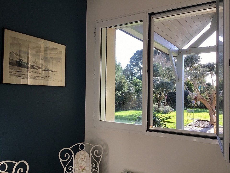 Nous pouvons accueillir jusqu'à 4 personnes avec deux chambres de plain pied à l’esprit « bord de mer ».Une équipée d'un lit de 160 et l'autre de 2 lits de 90. Une salle d’eau attenante, esprit « bateau », avec douche et WC privatifs est commune à ces deux chambres.
